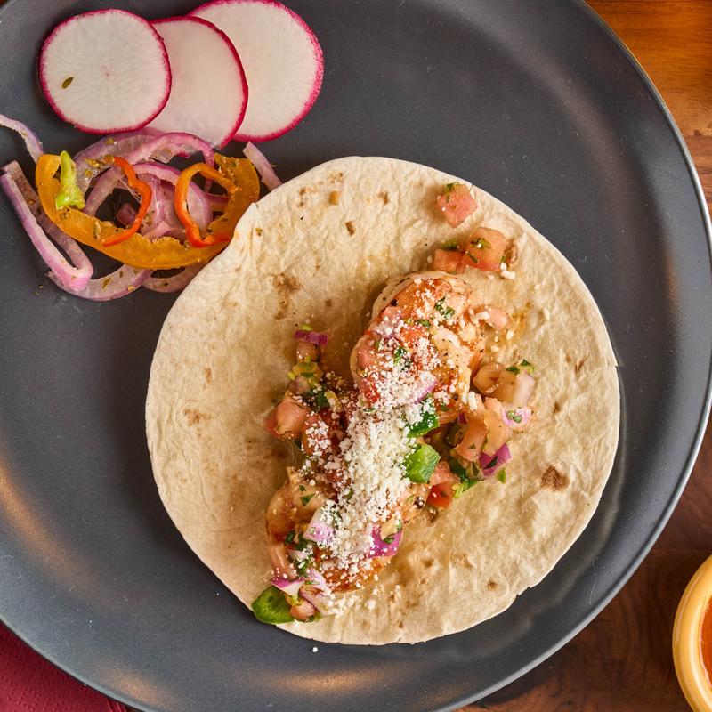 Shrimp, lettuce, pico, sour cream.
